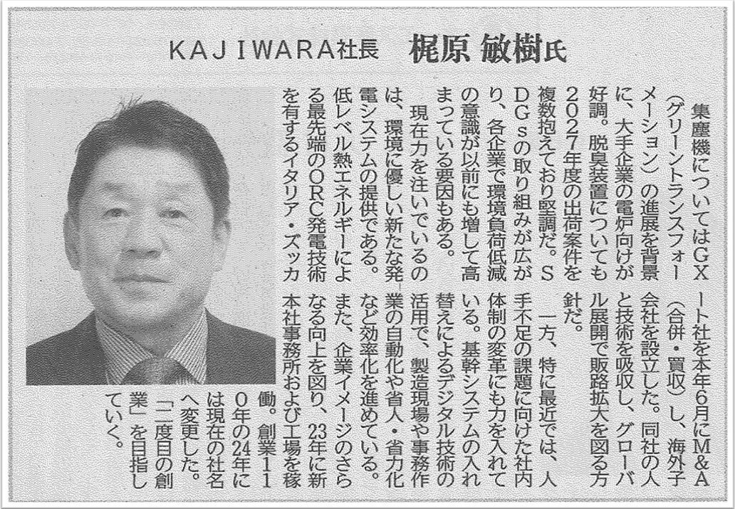 11月26日の日刊工業新聞 兵庫県播磨地区産業界「播磨の活躍企業の成長戦略」の紙面に弊社社長が掲載されました。
